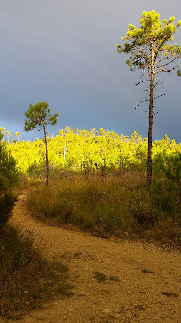 What a beautiful morning: a rainbow without rain! My walk started out in the mist high in the hills above Voltri (the western end of Genova). After descending on dirt tracks to the edge of the city, and passing under the motorway right where it forks (one goes toward France, the other to Alessandria), I came to the sea and stopped for mid-morning snack on the beach.
