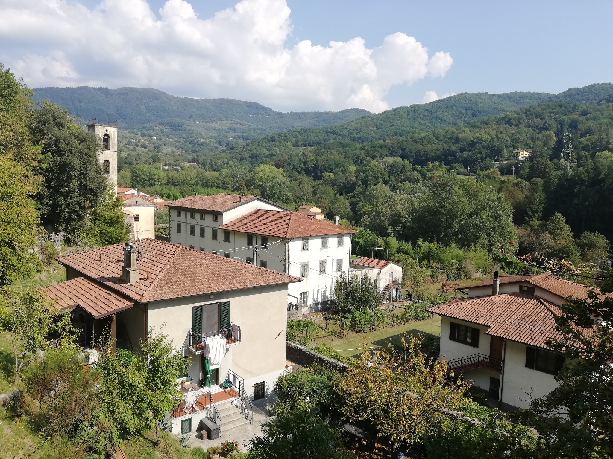After leaving Pontebosio we spent most of the day in the woods, sheltered from the sun. We walked along the top of a narrow ridge with calanchi (hoodoos) on either side and passed through the village of Olivola, somehow missed the hamlet of Saldina by taking a path through the brambles, were barked at by dogs in Piano di Collecchia, then climbed up a path through the woods to the Santuario della Madonna dei Colli, shut up and deserted. We stopped for a bite to eat on the grass by the church then continued along a forest path to the pretty village of Moncigoli. One kilometre down the road from here, a path through the vineyards brought us to Posara, after which we followed the paved road to Fivizzano. We arrived hot and sweaty after walking uphill on the asphalt in the afternoon sun, and checked into our suite at the Albergo Diffuso Cento Borghi. This brand new hotel has rooms in various buildings in the historic town centre: for 25 euros each, we have a twin bedroom, a sitting room and a large bathroom on the top floor of a historic building just off the main square!